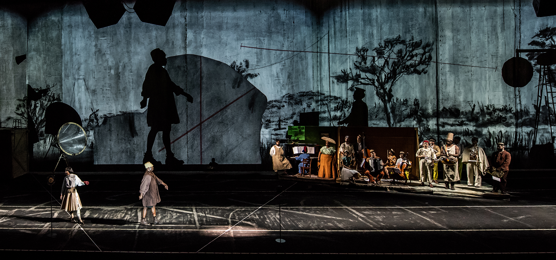 Praised as “a fiercely beautiful historical pageant” by the New York Times, Kentridge’s production unfolds on a massive stage, weaving together texts by anticolonial authors and Dada poets in multiple languages, with original music by Philip Miller and Thuthuka Sibisi that intermingles traditional African songs with quotes from WWI-era European music by Satie, Hindemith, and Schoenberg.